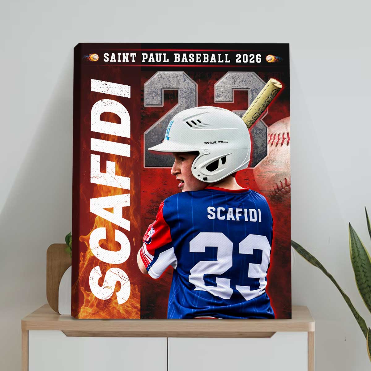 Whether displayed in a bedroom, game room, or family space, this custom baseball senior portrait canvas is a meaningful reminder of teamwork, perseverance, and the love of the game—making it an unforgettable gift for any senior baseball player.