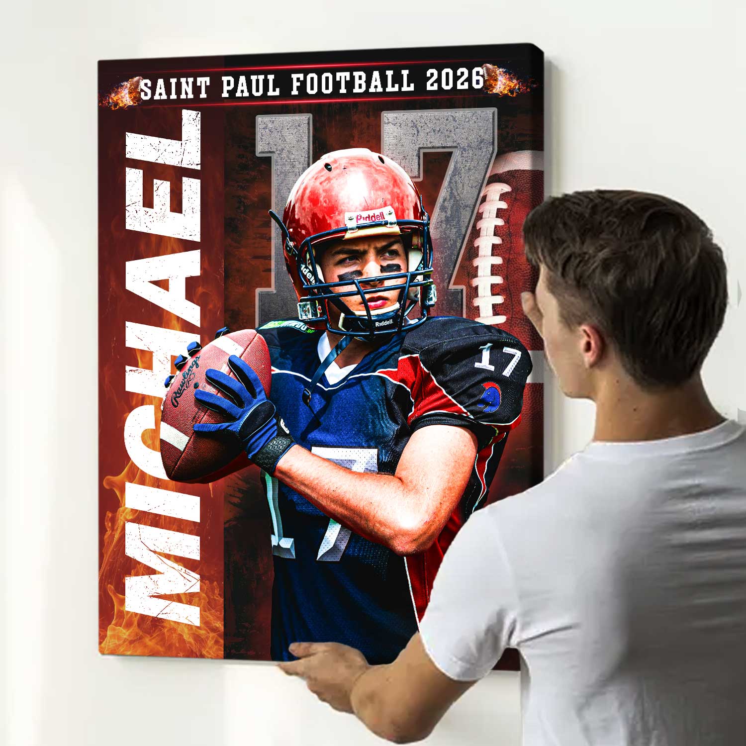 Whether displayed in a bedroom, game room, or family space, this custom canvas stands as a lasting reminder of growth, leadership, and the love of the game—making it a truly heartfelt gift for senior football players.