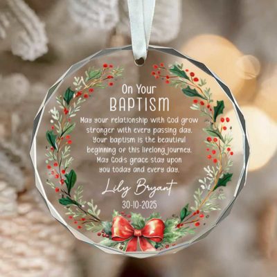Personalized Baby Baptism Glass Ornament – Christmas Baby Gift, Custom Name and Date Keepsake, Godchild Gift for Baby